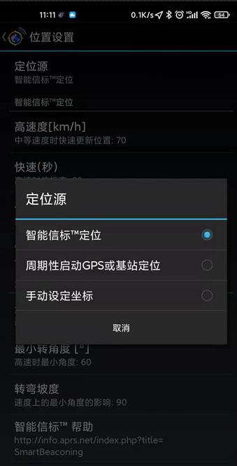 4.位置设置:根据实际使用情况选择图示三种定位方式,如选择“智能信标定位”后,为确保轨迹连贯,可以对智能信标参数作相应的修改。