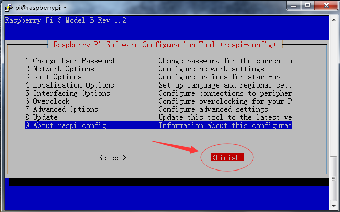 现在,您将返回Raspberry Pi软件配置工具主屏幕。使用Tab键选择<Finish>,然后按enter键。系统将询问您是否要立即重启。按Enter键重新启动Pi。