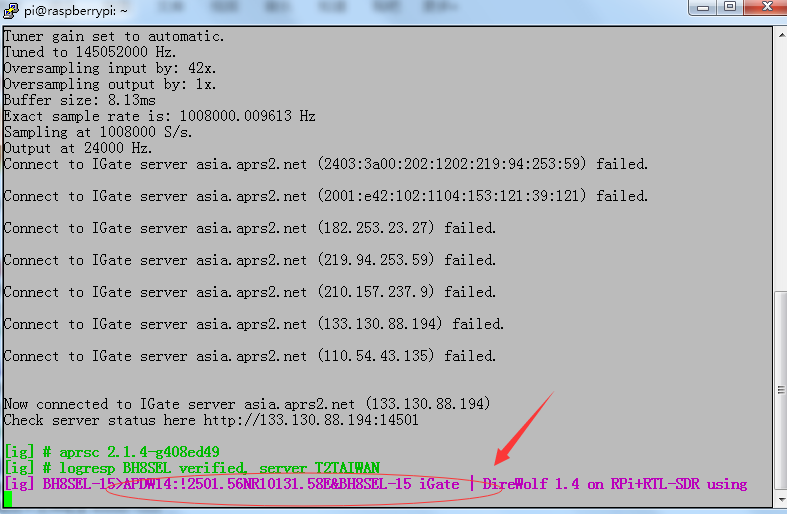 编辑以IGSERVER开头的行,IGSERVER asia.aprs2.net