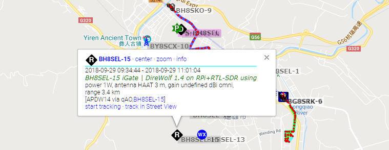 然后通过aprs.fi查看地图上的信标: