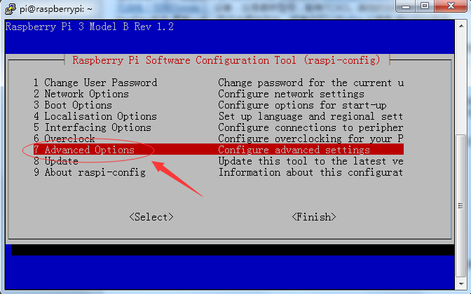 扩展文件系统非常重要 —通过选择选项7 “高级选项”,然后选择“A1 扩展文件系统”,然后选择确定,您将返回到主屏幕。