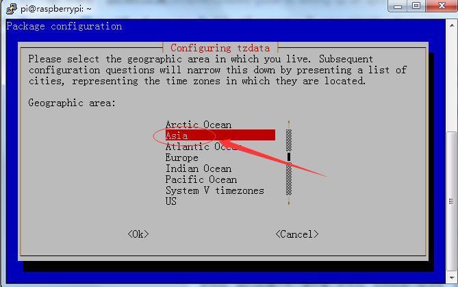 再次使用箭头键向下移动到“4 本地化选项”,然后按Enter键。再次使用箭头键选择Change Timezone,然后按enter键。首先选择您的“地理区域”,然后按Enter键,然后选择您的“时区”并按Enter键确定,您将返回到主屏幕。