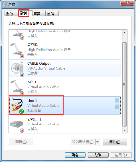 设置录制选项卡:录制选项卡如没有“Virtual Audio Cable”,则可能是系统默认隐藏。