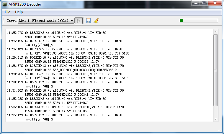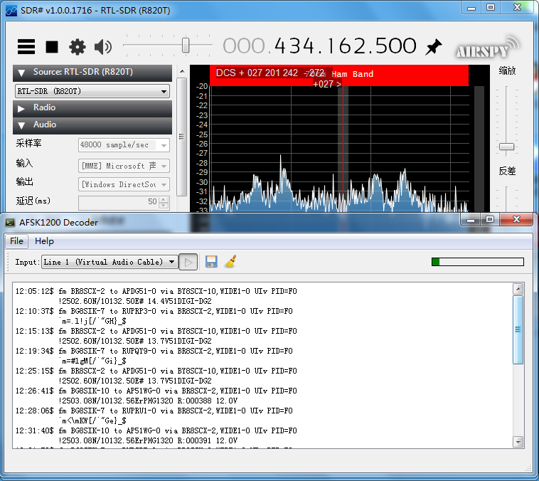 - 虚拟声卡用于将输出声音转发到麦克风输入,AFSK1200解码器将监听麦克风输入的信号。