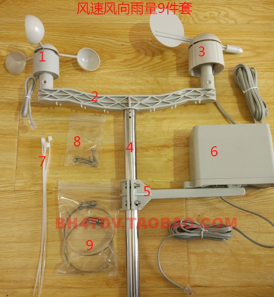 3、风速风向雨量气象传感器套件:安装时候需注意几个事项,雨量安装需要水平,撑杆不能太细,如摇换会影响准确度。风向需要确定方位,可以采用手机自带指南针确认校准。