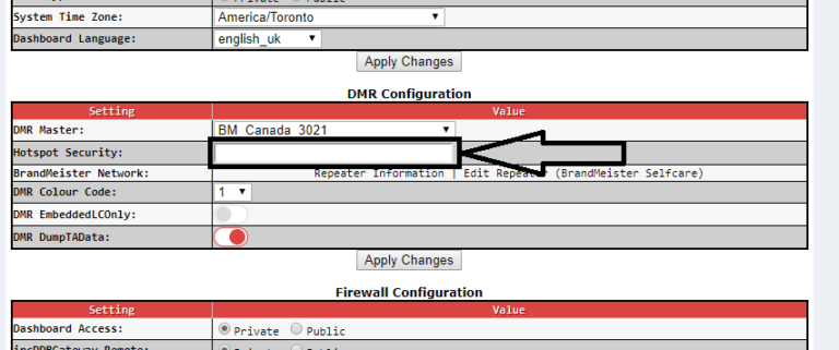 请注意,如果字段Hotspot Security为空,它将恢复为使用pi-Star更新提供的DMR主机文件中的默认密码。