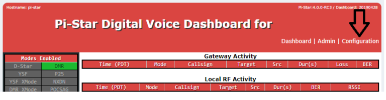 1.登录您的pi-Star Web界面,然后单击配置页面。