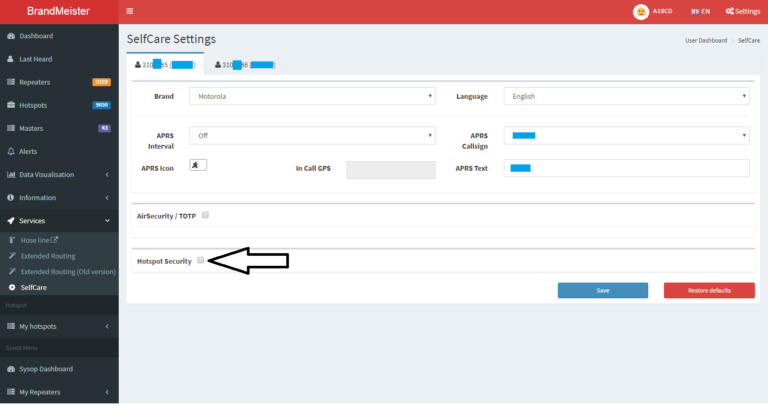 使用自制程序或MMDVM协议连接到BrandMeister主服务器的热点需要密码才能连接。目前,大多数人都使用“主服务器密码”,该密码通常发布在相应国家/地区的BrandMeister Wiki页面上。现在强烈建议每个用户在BrandMeister Selfcare中设置自己的密码。