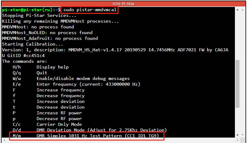 然后返回SSH并键入“ sudo pistar-mmdvmcal”以启动校准程序。