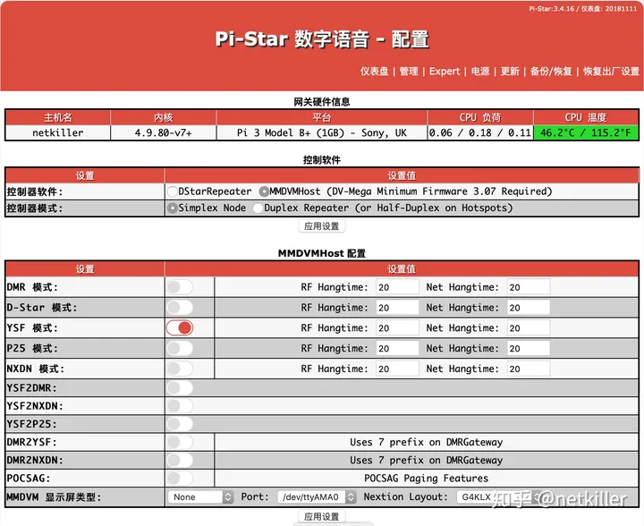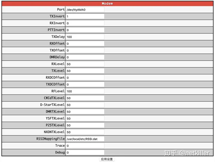 下面是 modom 配置,我没有修改,保持 pi-star 默认配置即可。另外RXOffset,TXOffset的设置对于中继板是无效的。