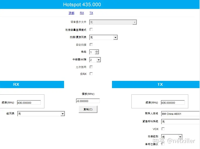 再新建一个正式使用的信道,435.000 联系人选择 BM China 46001