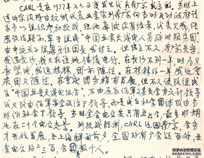 朱其清先生当抗日战争的烽火燃遍全国的时候,业余无线电爱好者们也不能袖手旁观。对于那时的业余无线电爱好者来说,人人都怀着要用先进技术来救中国的志向。于1932年10月,全国的爱好者们志愿组成了中国业余无线电社(CAC),并于1937年8月向政府递交了请愿书,两个月后,由朱其清先生牵头,在南京正式组建了业余无线电人员战时服务团(CARL:The Chinese Amateur Radio League)。