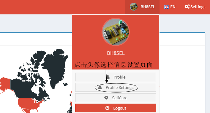 1.登录BM,点击屏幕顶部的呼号或头像,然后选择“个人资料设置”