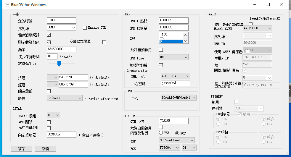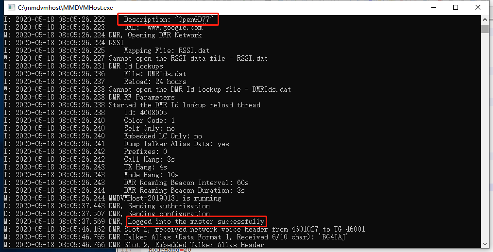 3.配置“MMDVM.ini”文件中的Callsign、收发频率、COM口、DMRid、服务器等部分的内容,配置好后保存,运行MMDVMHost.exe即可。