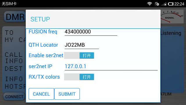 4.启动BLUEDV,进行配置,启用ser2net,输入ip 127.0.0.1,点击提交。