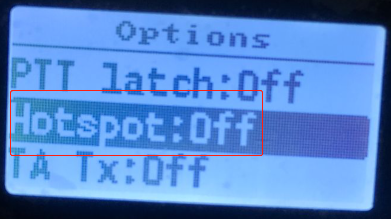 1.将对讲机调整至Options菜单,将Hotspot选项改为“mmdvm"
