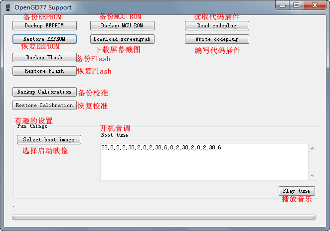 附加功能。OpenGD77 CPS提供了扩展功能和配置选项。你可以通过它来刷写固件、设定开机屏幕、开机音调、无线电校准以及通过网络加载DMR ID数据库等。