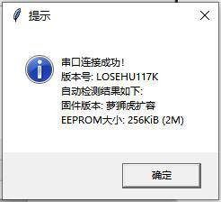 ①选择正确的串口,软件会自动识别固件版本、eeprom 容量信息。如 eeprom 识别不正确,可手动选择正确的容量。