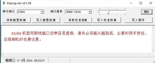 正常开机状态下,使用开源刷机软件 K5prog 执行以下操作