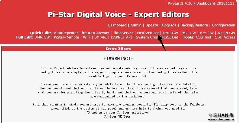 然后我们将转到专家》》》》MMDVM主机设置。