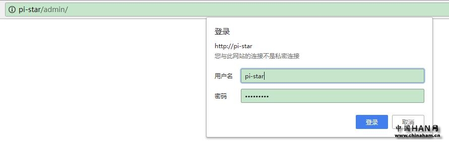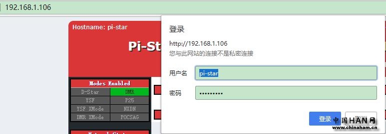 单击配置。登录默认用户名:pi-star,密码:raspberry。
