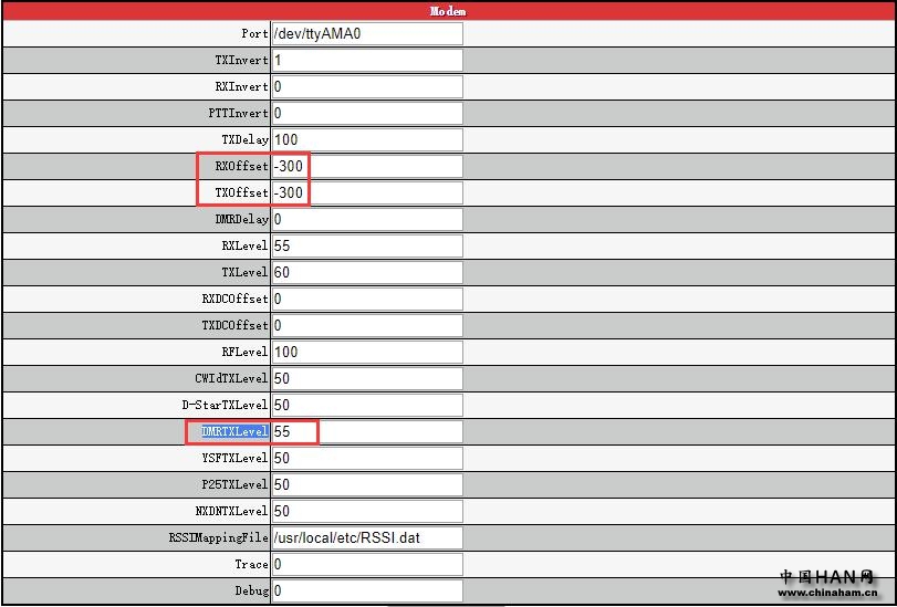向下滚动直至到达调制解调器。我们现在应该设置偏移。对于我的MMDVM双工热点板,设置偏移量-300将获得较低的BER。使用Ailunce HD1时,最好更改DMRTXLevel=55或60。