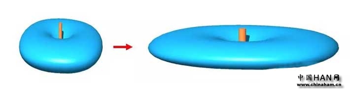 根据能量守恒原理,能量不会增加也不会减少。如果要增加水平方向的发射能量,就必须削弱垂直方向的能量。因此,使标准半波阵列的能量辐射模式变平的唯一方法如下图所示。