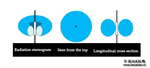 半波振荡器不断向空间传播电磁波,但信号强度在空间中的分布并不均匀,就像一个类似轮胎的环。
