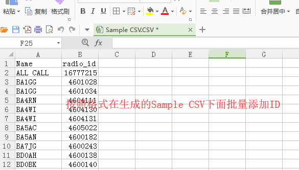 5、Excel打开上一步创建的CVS,在里面批量添加ID后保存,注意不能修改文档格式。