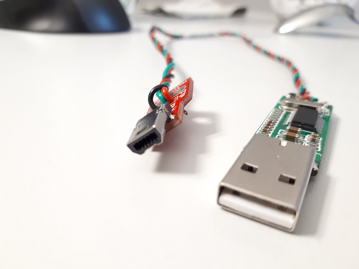 原作者通过解剖原装数据线后发现,使用的模块就是类似于带有pl2303芯片组USB转RS232模块、接口部件名称为:AXJ443000 | Mini I/O 11 Pin Connectors、红色PCB板不是必须的,制作了只是便于焊接插头。