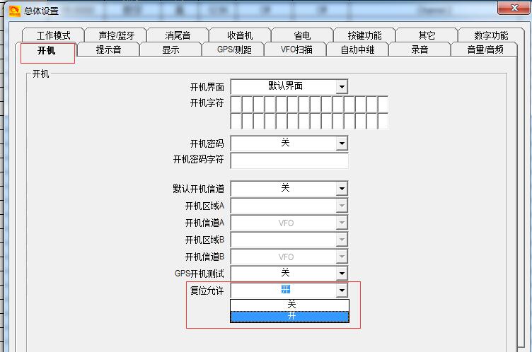 如果需要恢复出厂设置,需要在总体设置→开机→复位允许,选择开了之后,才能用按住“PTT+PF1”重置机器。