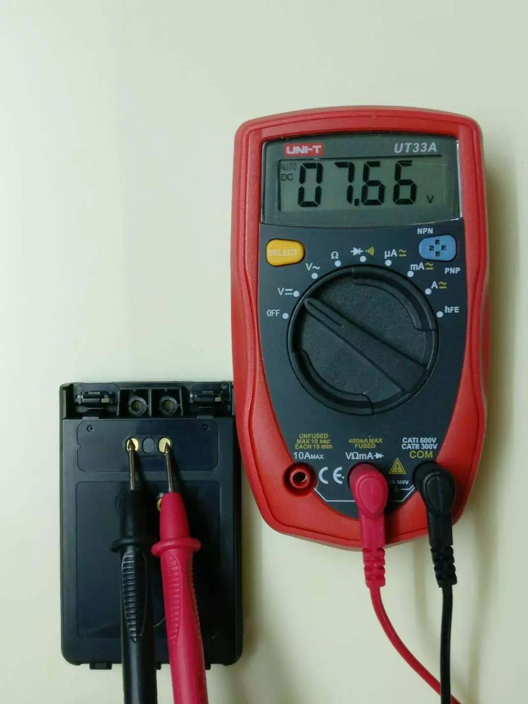 YAESU FT1D 对讲机电池组装。首先购入相关电池壳及电路套件,串联焊接2个103450电芯,装入电芯并焊接上电池保护板,然后盖上底板焊接好电池输出点,最后贴上贴纸美化一下。用万能表测量电压得7.66V,将组装好的电池插入YAESU FT1D对讲机,开机显示7.6V,搞掂!充电去……