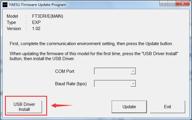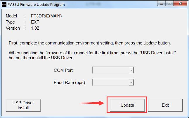 2.双击“ FT3D MAIN verXXX(YYY).exe”(YAESU图标)打开固件更新程序