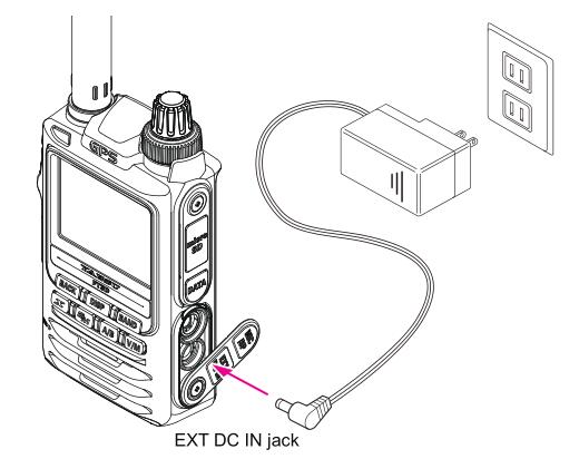 3.将电源适配器插入EXT DC IN孔给机器供电。