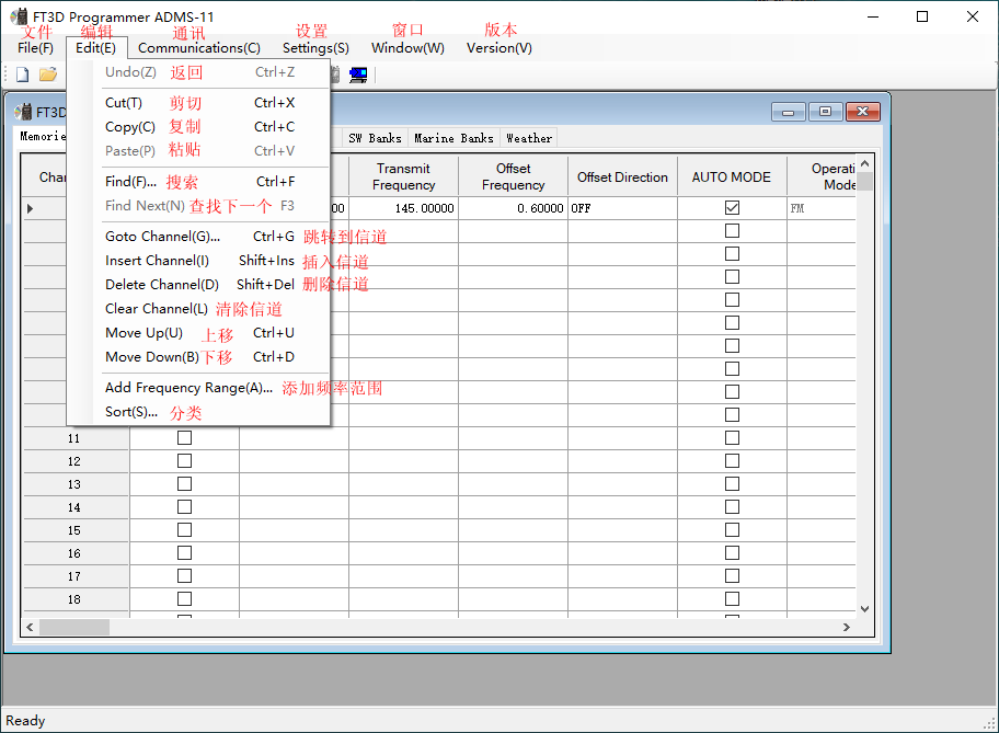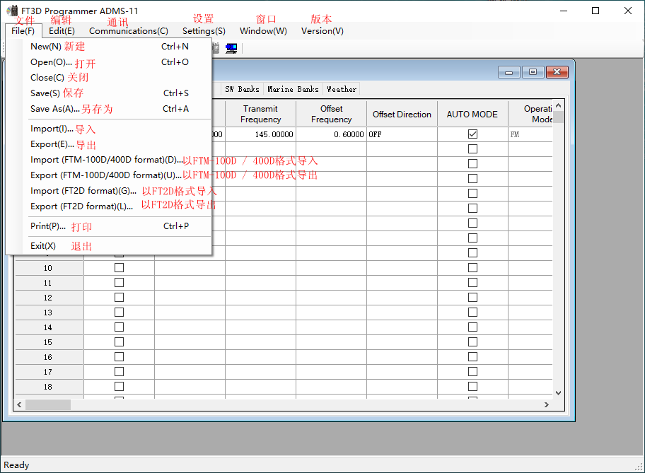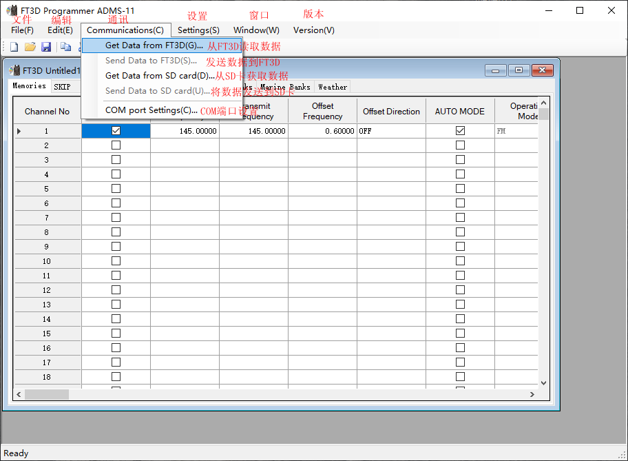 手台正确连接至电脑,从菜单栏中选择“通讯” 菜单, 然后单击“ 发送数据到FT3D”。