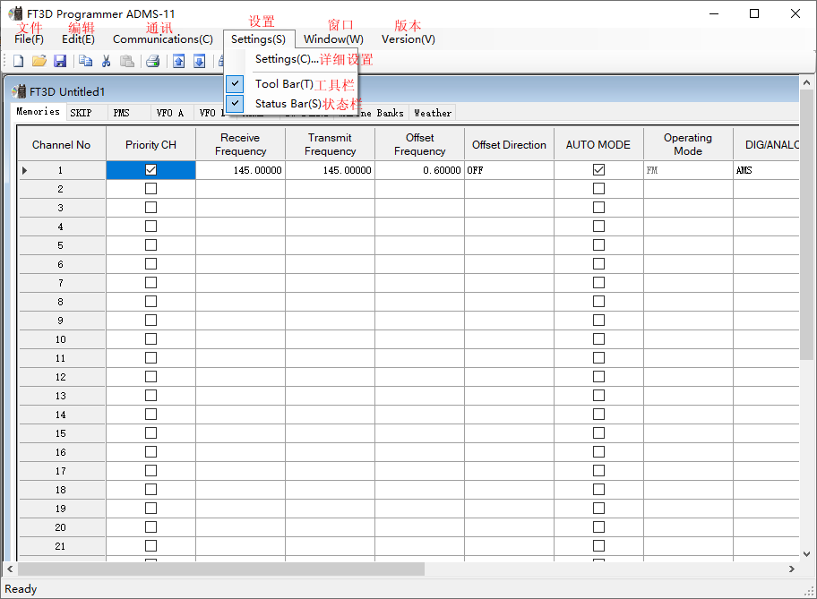 从Yaesu网站下载ADMS-11软件、SCU-19 USB驱动程序(http://www.yaesu.com/)。