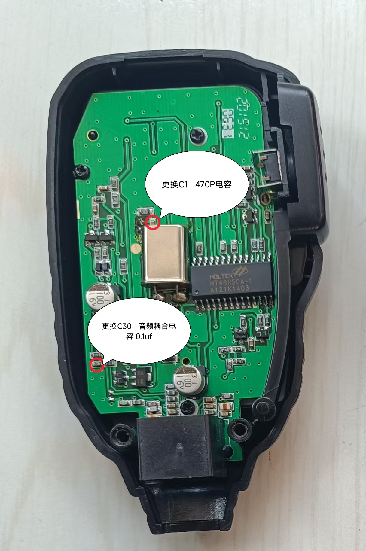 国产手咪需要修改2处电容,具体看下图
