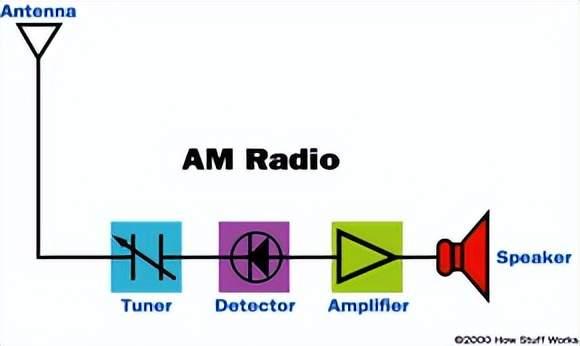 在 FM 收音机中,检测器不同,但其他一切都是一样的。在 FM 中,检测器将频率的变化转化为声音,但天线、调谐器和放大器大体相同。