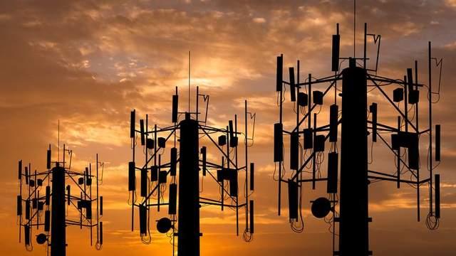 无线电发射器中的天线将无线电波发射到太空。这个手机信号塔为智能手机客户提供服务。
