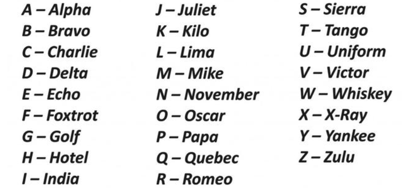 Quebec, India, November, Golf, Delta, Alpha, Oscar.