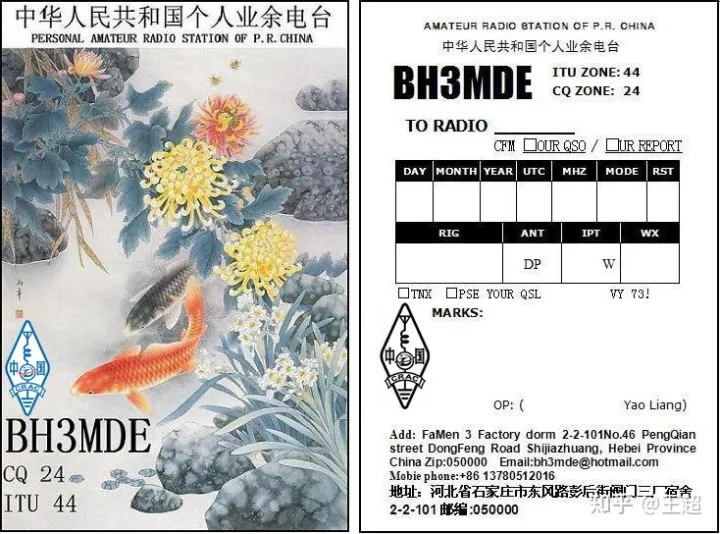 ⑦ 本台所在地及交换QSL卡片详细地址的中英文说明,个人电台应有本人姓和名的中文和汉语拼音的印刷体标志。