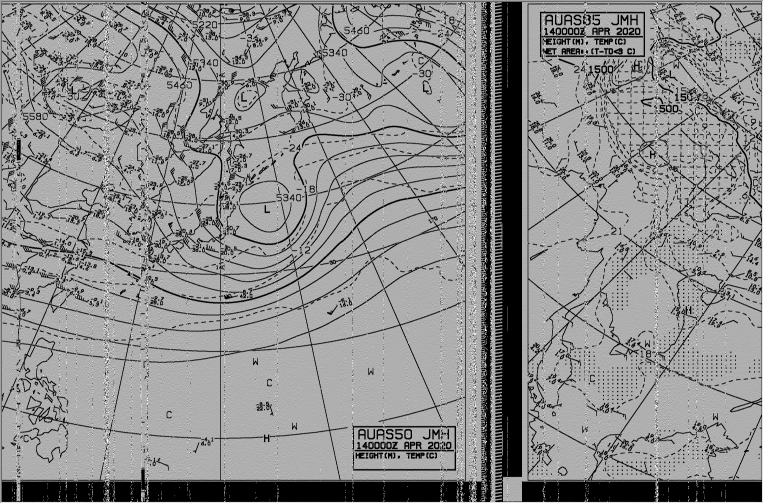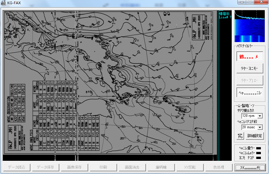 偶然间看到一个博客里的帖子介绍接收日本JMH气象传真的方法,按照博主介绍的方式尝试了一下,接收到如下传真图片: